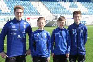 Andreas, Benjamin, Olai og Simon frå Ulstein ungdomsskule var torsdag på jobbskygging i Hødd og fikk eit innblikk i kvardagen på Høddvoll.